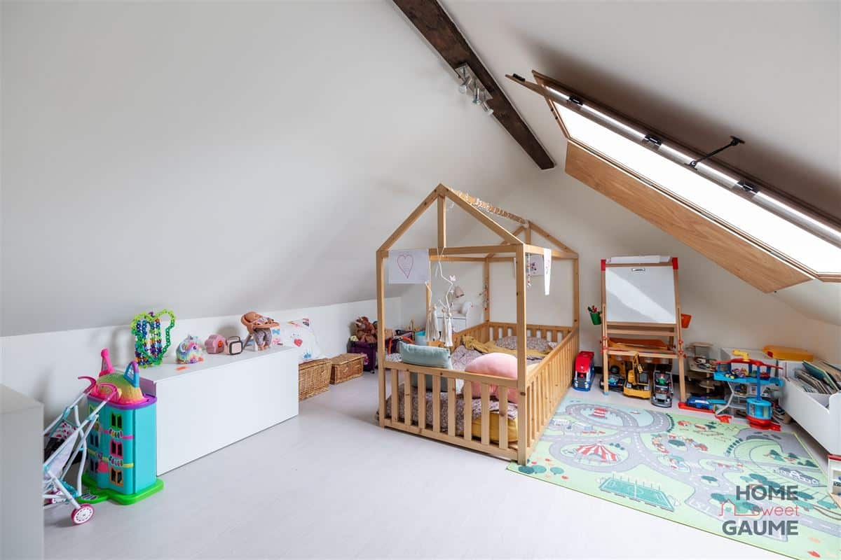 Le rez-de-chaussée propose un espace de vie convivial composé d’un salon, d’une salle à manger et d’une cuisine équipée. À l’étage, le hall de nuit dessert une chambre, un WC séparé ainsi qu’une salle de bains. Les combles ont été aménagés en une seconde chambre offrant un bel espace supplémentaire.