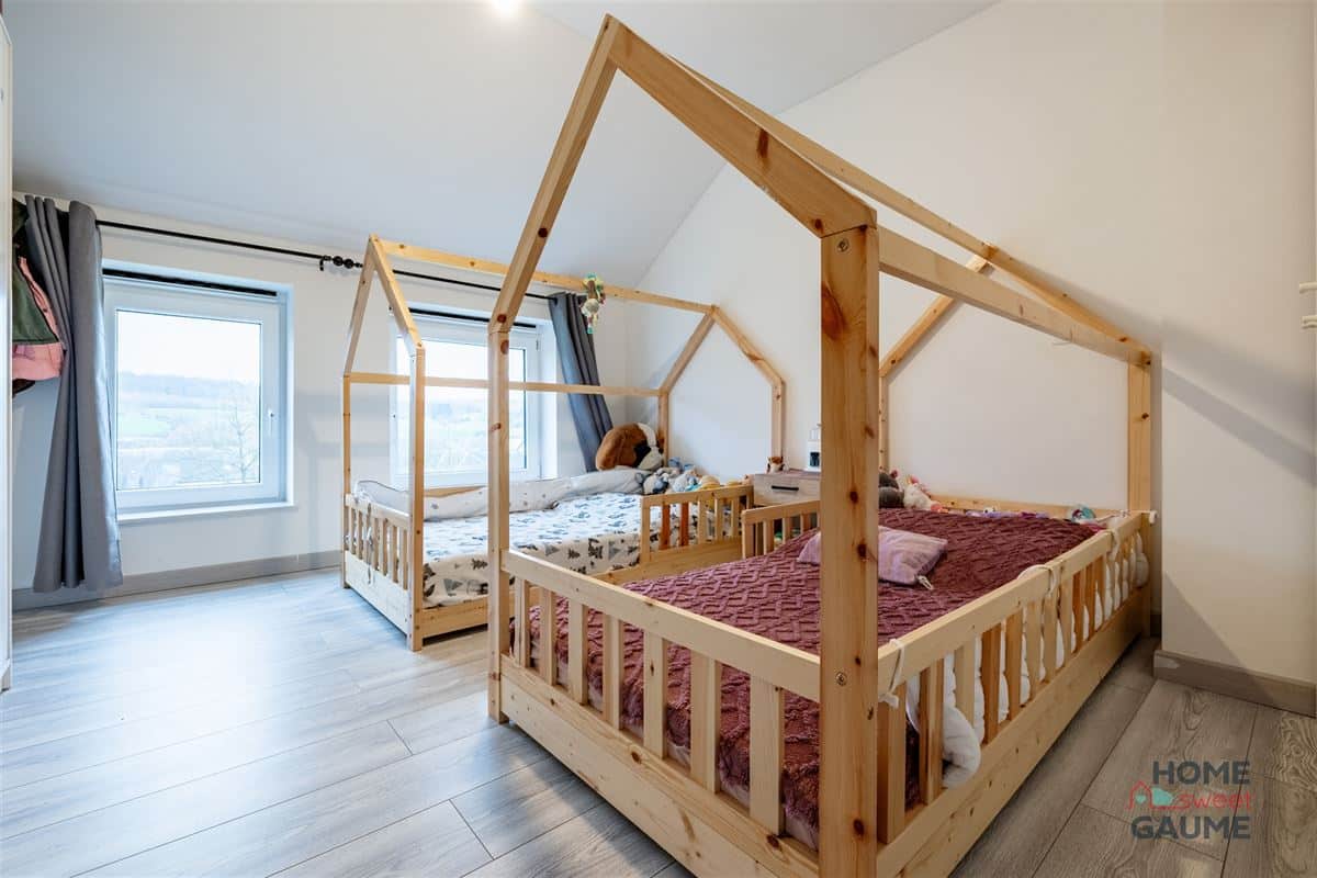 À l’étage, l’espace nuit propose quatre chambres, dont une suite parentale avec dressing et salle de douche, ainsi qu’une seconde salle de bains équipée d’une baignoire, d’une douche et d’un meuble double vasque. Côté technique, la maison bénéficie des atouts d’une construction récente : isolation performante, châssis PVC double vitrage, installation électrique conforme et équipements modernes, garantissant confort et tranquillité pour les années à venir.