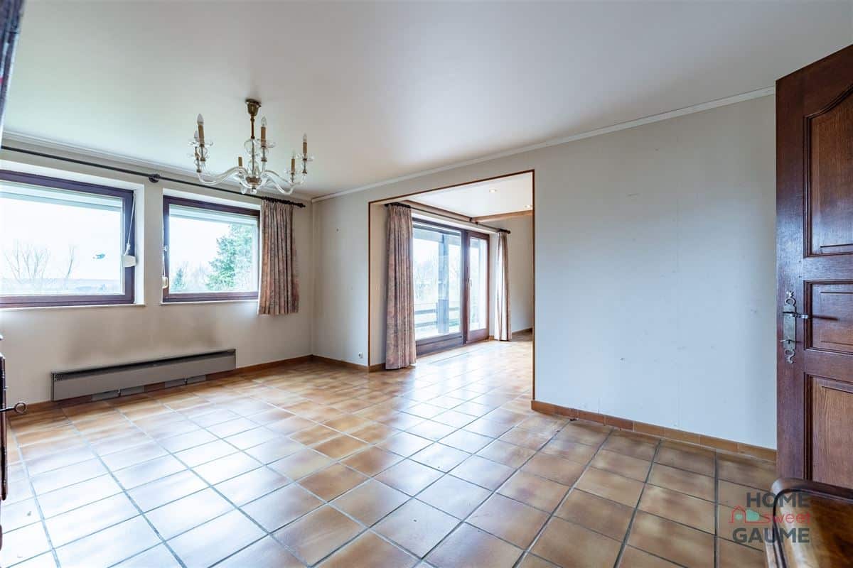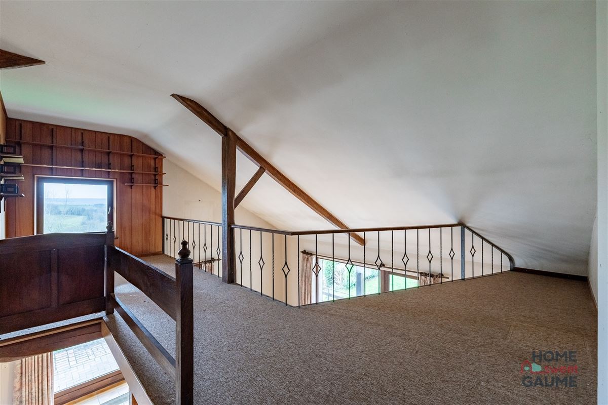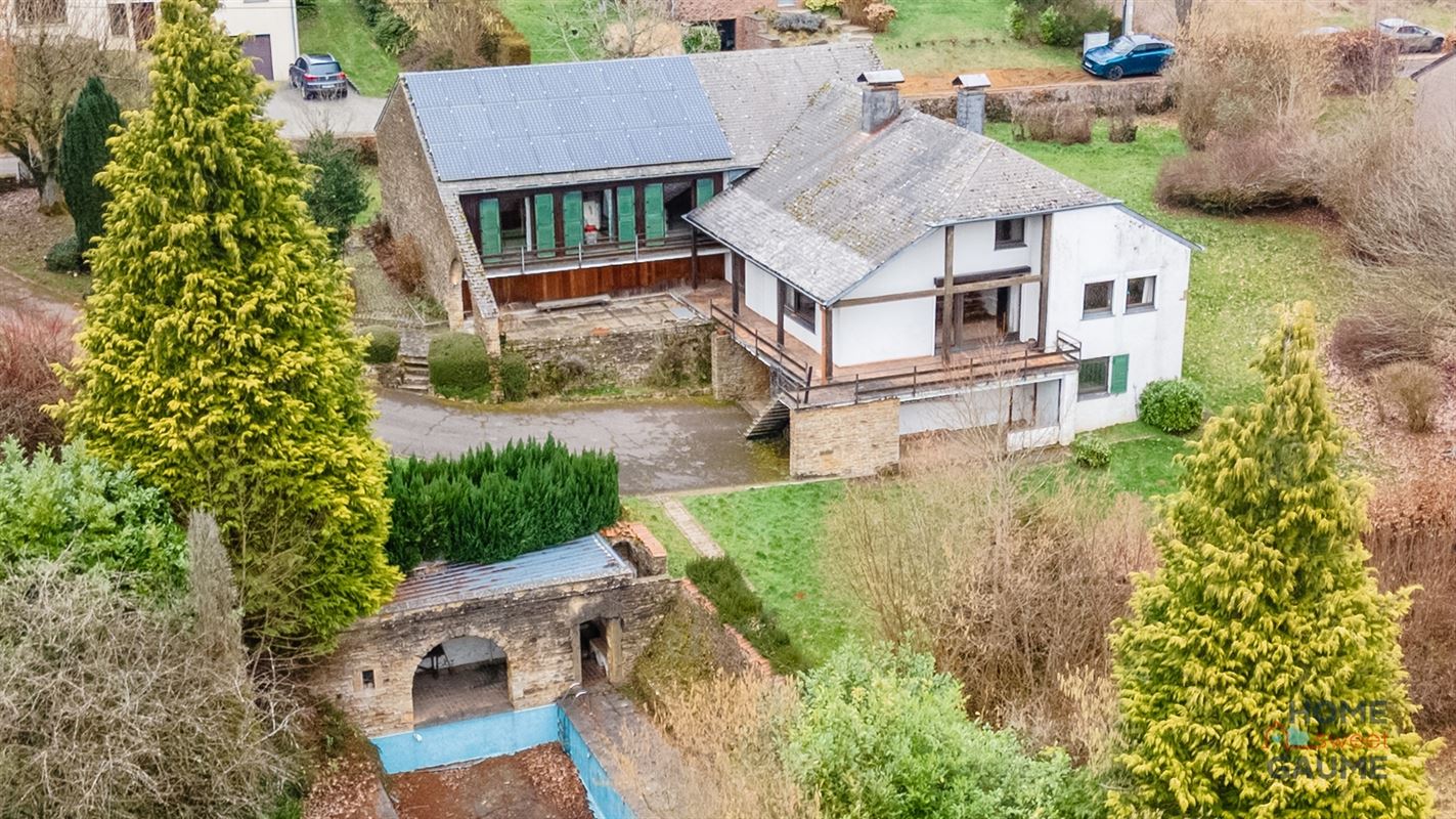 Située dans le charmant village de Robelmont, cette maison 4 façades construite en 1975 prend place sur une belle parcelle de 36 ares et profite d’un environnement calme avec vue dégagée sur la campagne gaumaise. La maison offre de beaux volumes de plain-pied avec un hall d’entrée, un vaste séjour lumineux avec cheminée, une salle à manger ainsi qu’une cuisine avec arrière-cuisine. L’espace nuit comprend quatre chambres, une salle de douche et une salle de bains. À l’étage, une mezzanine et un bureau complètent les espaces et permettent différents aménagements. Le bien dispose également d’un grand sous-sol avec caves et garage. À l’extérieur, vous profiterez d’un magnifique jardin orienté plein sud d’environ 3 500 m², d’une terrasse et d’une piscine de 10 x 5 m à remettre en état. Côté technique : toiture en ardoises artificielles équipée de panneaux photovoltaïques, électricité à remettre aux normes et châssis double vitrage bois avec volets. Le Belvédère des Naux est un bien dans un cadre idéal pour les amateurs de nature et de tranquillité. Intéressés ? Contactez nous ! Les informations fournies par l'agence ont un caractère indicatif et non contractuel. En conséquence, elles ne peuvent engager la responsabilité de l'agence et ne dispensent pas la personne intéressée de réaliser les vérifications.